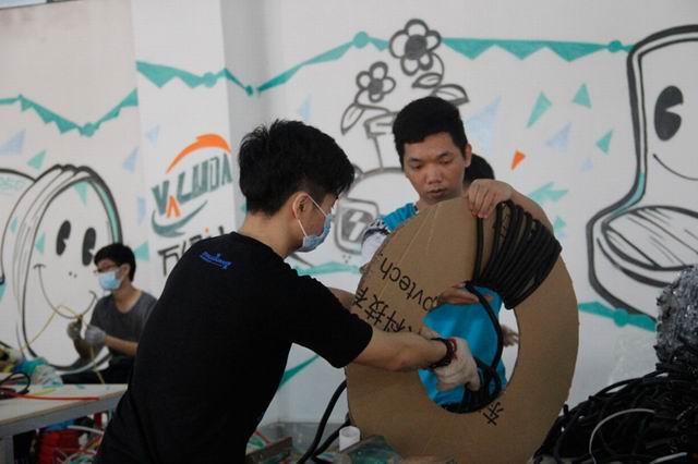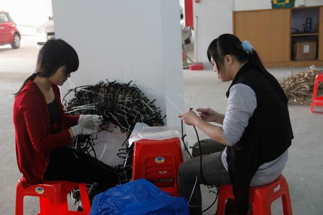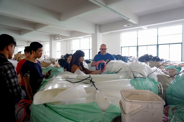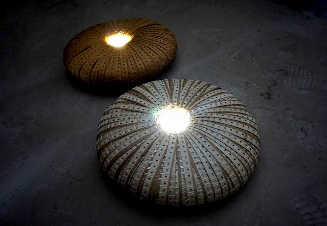 David Bramston教授根据各种材料的属性、结构、色彩、表面特征等,亲自设计不同类型、不同材料的灯具,并指导学生发挥想象,通过创意、组合和再设计(RE-DESIGN),共同完成60-100盏灯灯具癿制作,让废弃物重新具有一种新的使用功能,延续了材料的生命周期。