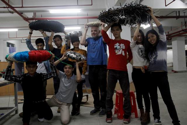 人文艺术学院视觉传达艺术设计专业12级学生11月份在陈菁晖老师的带领下参加了在"2014低碳设计实训项目暨作品展",该项目和英国林肯大学合作,由林肯大学David Bramston教授做导师,采用从生产链上遗弃不用的工业余料,开展为期一个月的以灯饰为主题的专项设计活动。