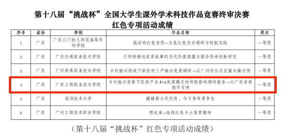 我校由酒店管理学院选送,由周琳、陈晓容、于斐涵等老师指导的参赛作品《乡村振兴背景下民宿产业4+x发展模式的积极影响调研报告——以广东省英德市为例》荣获国赛专项赛一等奖,比赛成绩取得历史性突破。