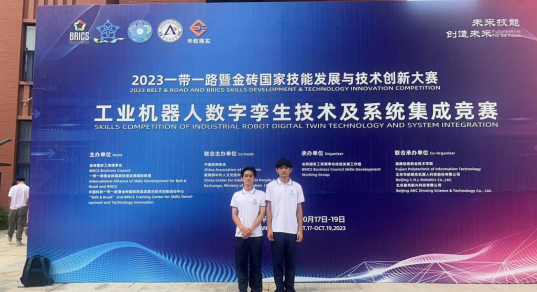未来技能,创造未来。为搭建人才国际合作平台,加快技能人才培养,更好地服务于智能制造产业发展,10月17日至 10 月 20 日,“2023 一带一路暨金砖国家技能发展与技术创新大赛工业机器人数字孪生技术及系统集成竞赛(高职组中国区决赛)”在福建信息职业技术学院举办。广东工程职业技术学院人工智能学院工业机器人技术专业团队获得了总决赛二等奖(国赛),学校荣获优秀组织奖,实现了在此项赛事上的新突破。