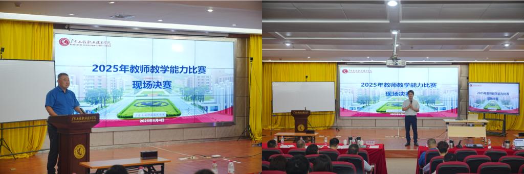 为全面提升学校内涵建设,适应产业行业需求,构建优质教师队伍,以赛促教、强师赋能,广东工程职业技术学院于6月4日在广州校区图书馆学术报告厅举办2025年教师教学能力大赛现场决赛。学校校长李丽、副校长吴志敏出席活动,并与广东职业教育技术学会现代教育装备技术专委会常务副主任罗俊教授、广东水利电力职业技术学院科学技术部负责人/自动化与信息技术学院副院长龚兰芳教授,及校内各二级学院院长共同组成评审团,见证了一场展现职业教育改革成果的教学盛宴。比赛由教务部部长朱珍主持,全体校赛参赛团队、专业主任到场观摩。