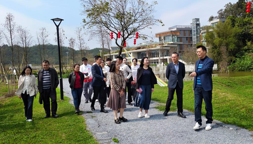 上午,文化旅游学院党委书记桂爱民、院长吴海彬、党委副书记罗汉红、副院长陈国雄、副院长伍燕青,与省旅游集团党总支书记、董事、总经理杨智,首席运营官范浩然,人力资源总监罗夏希一行,前往位于清远市清城区东城街道的“和秧合社"”农文旅项目实地考察。