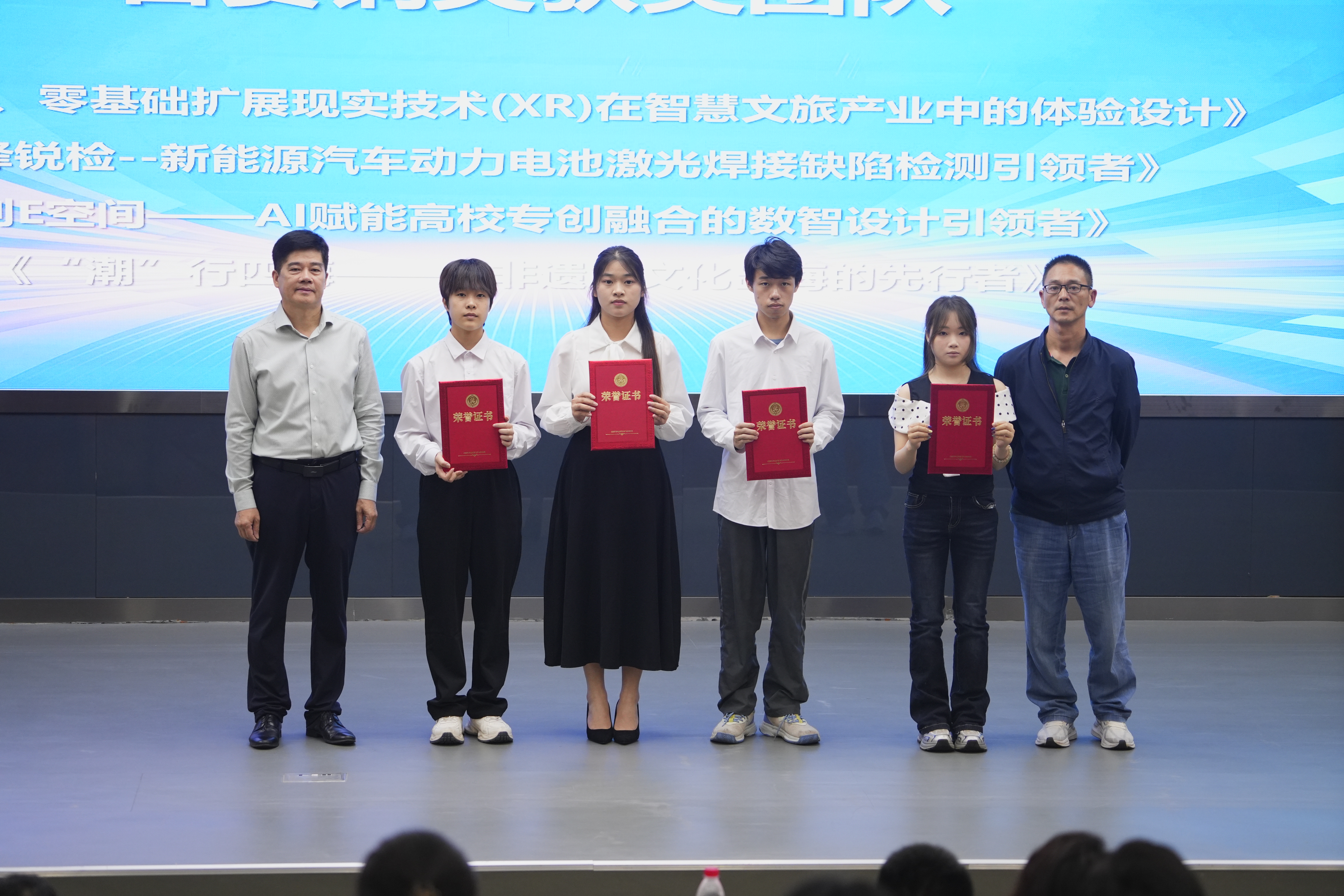 学生工作部(招生与就业中心)部长吴华长、校团委书记刘山发为获得省赛银奖的项目团队颁奖