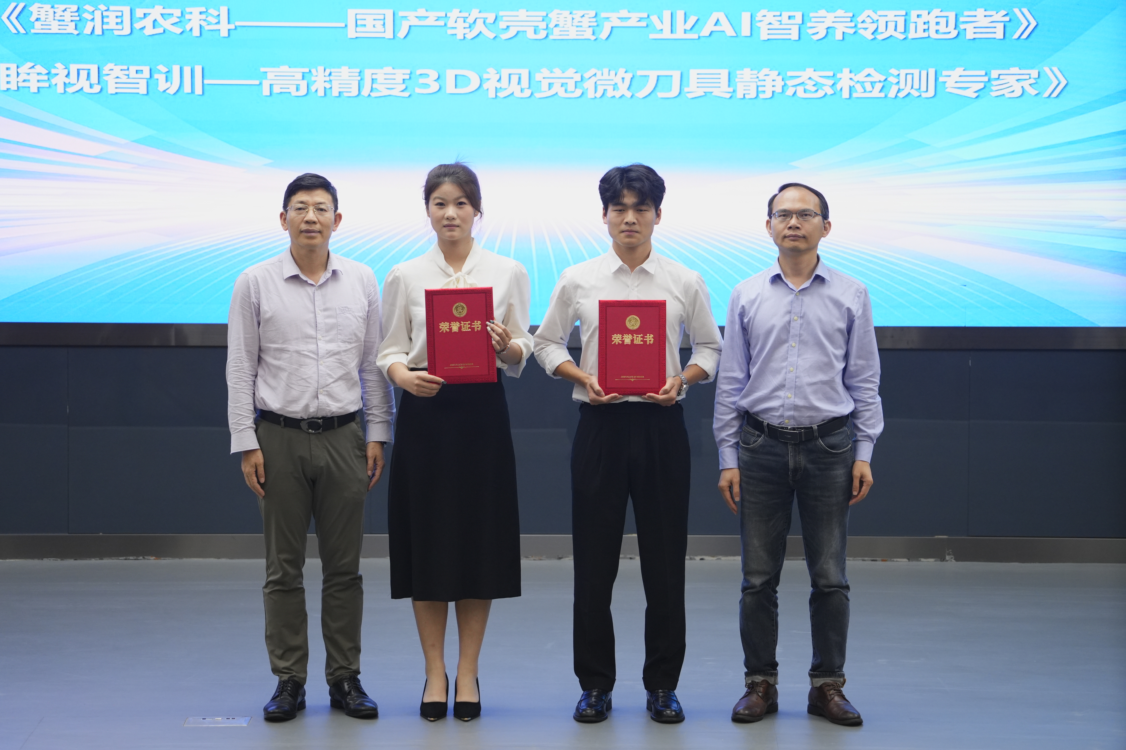 在国赛层面,《蟹润农科——国产软壳蟹产业AI智养领跑者》项目团队荣获中国国际大学生创新大赛(2025)全国总决赛铜奖。在省赛层面,《眸视智训——高精度3D视觉微刀具静态检测专家》等6个项目团队分获省赛银奖和铜奖。学校同时荣获广东省分赛学校集体奖。