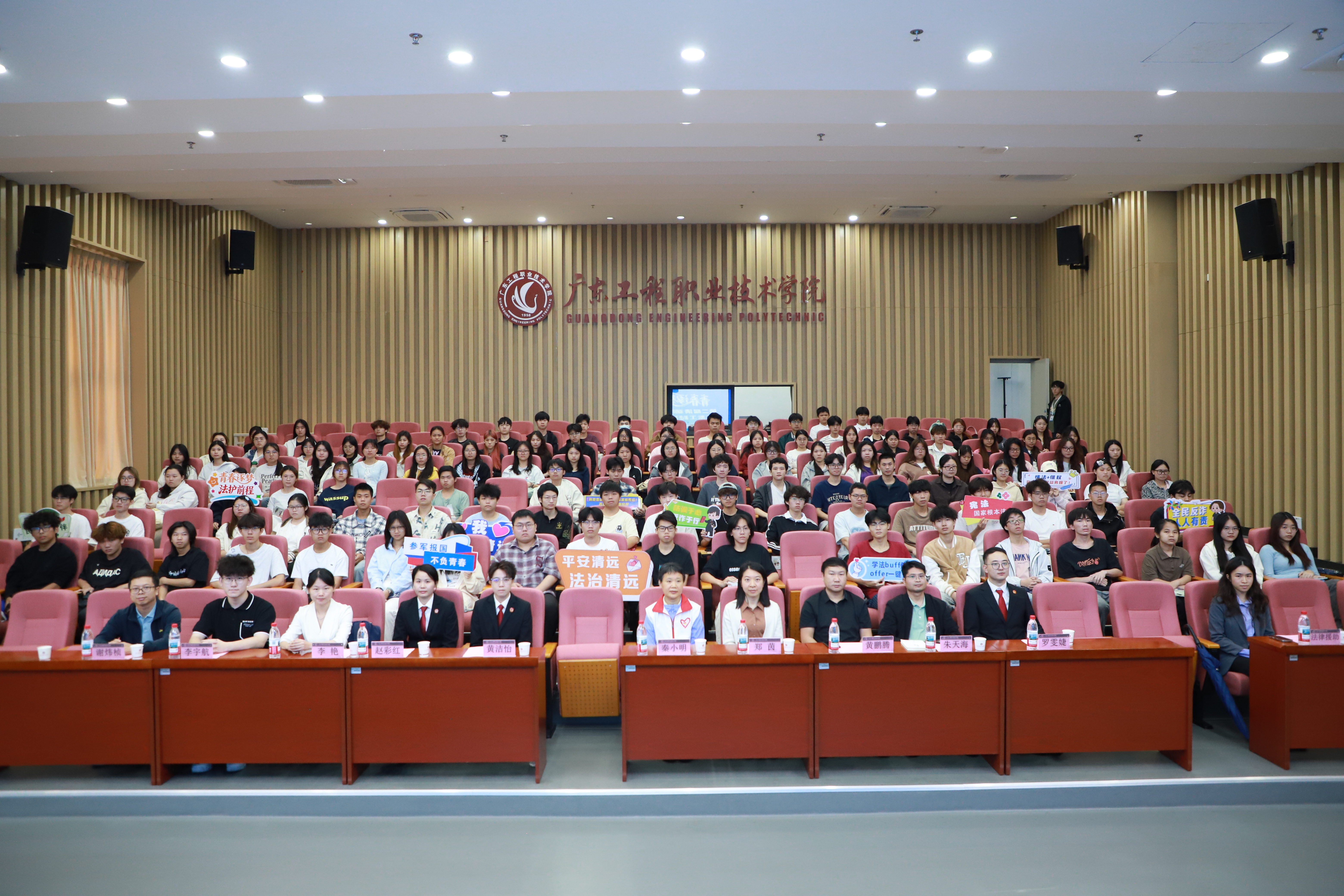 4月24日上午,正值全国首个“全民阅读活动周”,由市委依法治市办、市司法局、市法院联合举办的“青春逐梦 法护前程——大学生求职法律风险预防暨第二届清远法治文化高校行系列活动第五场——防范求职诈骗主题宣讲暨法治阅读实践活动”走进广东工程职业技术学院。莅临本次活动的有清远市司法局四级调研员秦小明、清远市中级人民法院二级法官黄洁怡、清远市司法局普法科科长郑茵、学校团委兼职副书记李艳、学校总务后勤部(保卫部)朱天海、大学生法律爱好者协会指导老师黄鹏腾、马克思主义学院专任教师谢炜桢、学校团委专职团干李宇航和清远市司法局、清远市中级人民法院工作人员。活动将法治宣传与全民阅读深度融合,为青年学子送上一场兼具法治温度和书香气息的实用法治课。