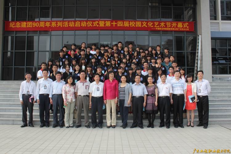绚丽的礼花、振奋的歌舞、激情的音乐、张扬的青春……4月26日下午,广东工程职业技术学院庆祝建团90周年系列活动启动仪式暨第十四届校园文化艺术节开幕式在学院行政楼前广场隆重举行。开幕式现场进行社团文化展。省科协直属机关党委副书记黎伟民,学院汤少明院长、陈杰伦副院长、学院党委徐启扬副书记、李军副书记、省科协团委郝雁书记等领导出席了开幕式;中国科协组织人事部王慧梅副部长、杨彩虹处长、姚振清处长在学院刘文清书记、省科协冯永忠处长的陪同下,参观了学院的社团文化展。