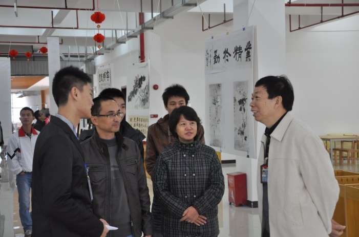 设计与艺术系主任邓中云对此展给予了很大的帮助和支持,他在致词中点评了展览的艺术风格和面貌,对学院领导、图书馆以及院团委等的大力支持表示感谢,并表示设计与艺术系将一如即往的支持书画协会,携手共建和谐校园、文化校园和艺术校园。