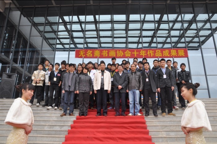 本次书画展顾问、学院领导陈杰伦同志首先作了精彩致词,他阐述了无名斋书画协会创会十周年的发展历程,并对其工作予以充分肯定,他还从自己的感悟谈了对书法艺术的独特看法,他希望同学们今后多主办此类活动,并给予殷切的希望!