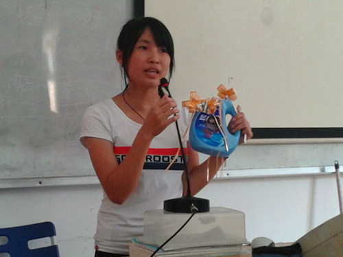 活动现场,8支入围决赛的队伍展开了激烈角逐。参赛作品为现场制作,原材料均采自宿舍常用生活废旧用品。经过选手们的巧手,纸盒、塑料瓶、破旧牛仔裤、龙眼枝和核等废旧物品华丽转身,成为六角精品盒、七彩风铃、嘻哈风格手提包、精致挂饰……还有参赛选手利用物理学原理及丰富的想象力,把废纸和塑料瓶神般结合成了能飞向高空400米的水箭炮。一件件独具匠心、妙趣横生的手工作品,摆满了整个教室。经过评选,建筑工程学院陈邓强团队凭借实用性强、精致度高精品盒获得评委青睐,一举夺冠。
