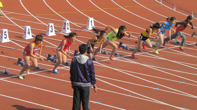 女子100米参赛选手起跑精彩瞬间
