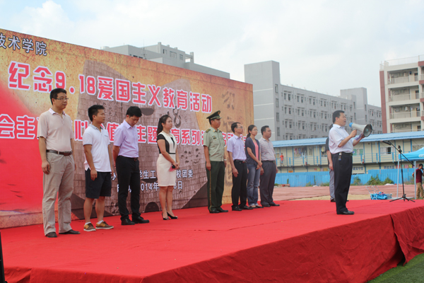 9月18日上午,学生工作部、校团委在学校东区田径运动场举行纪念"九一八"事变升旗观礼仪式,启动开展广东工程职业技术学院大学生践行社会主义核心价值观主题教育系列活动。校党委委员、副校长李艇出席,学工部、校团委、各二级学院党总支副书记、辅导员、全体新生及各校级学生机构、军事爱好者协会代表等师生参加。仪式由学生工作部张华部长主持。