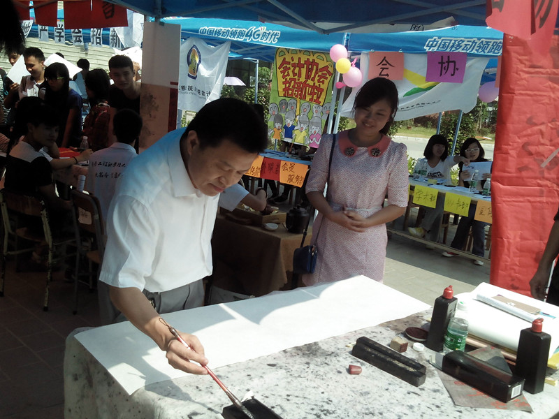 活动中,校党委委员、副校长李艇和校团委黄馥丽书记来到活动现场与同学们亲切交流。李校长亲切了解新生的兴趣爱好和参与意愿,鼓励广大新生积极报名参加社团,在参与社团活动中培养兴趣爱好、提高综合素质、促进人格完善。李校长走到书画协会,向现场工作人员仔细询问各社团发展情况、特色活动,并交流起来,还现场"演绎"书法表演,受到学生的喝彩。他指出:"鼓励广大学生社团紧紧围绕服务广大同学成长成才的中心目标,结合当下青年学生特点,进一步加强社团自身建设,多设计举办有文化、有内涵、寓教于乐的活动,增强活动的吸引力和影响力,扩大活动的参与度和普及面,为同学们提供一个学习交流、展示锻炼自我的平台。"