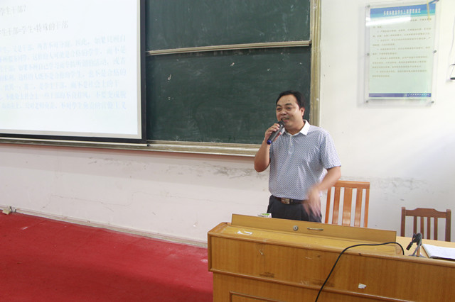我院党总支副书记揭英荣老师做了主题为"谈谈如何当好一名学生干部"的培训,揭老师分别从"阳光面对,传递正能量;团结合作,构建强团队;高效沟通,强化执行力;开拓创新,创精品项目"四个方面讲述了学生干部如何服务好同学、开展好工作、取得好成绩。讲座中揭老师引经据典,引用中今中外名人趣事深入浅出地为大家剖析了什么是学生干部,如何当好学生干部。