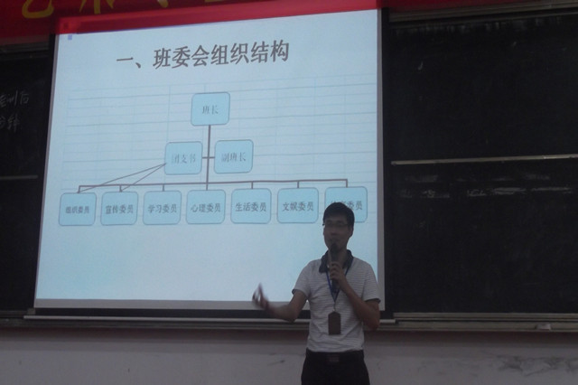 另外,我院经验丰富的辅导员晋保山老师做了主题为"班干如何开展班级工作"的培训,晋老师引用一句俗语"火车跑得快,全靠车头带"诠释了大学班级管理中班长负责制的重要性,以班长为例,班干在大学班级管理中要学会"三会"。学会做人:做到严于律己,宽以待人,乐于奉献,任劳任怨;学会做事:培养统筹力,执行力,积极主动,勇于创新;学会做学问:做好自己,为营造良好班风、学风做奉献。培训班上,团总支、学生会主要学生干部对2014级新生班干也开展了党务、团务、学风(考勤)工作业务的培训。
