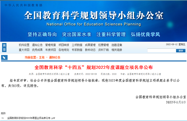 喜讯:我校获全国教育科学“十四五”规划2022年度教育部专项课题立项
