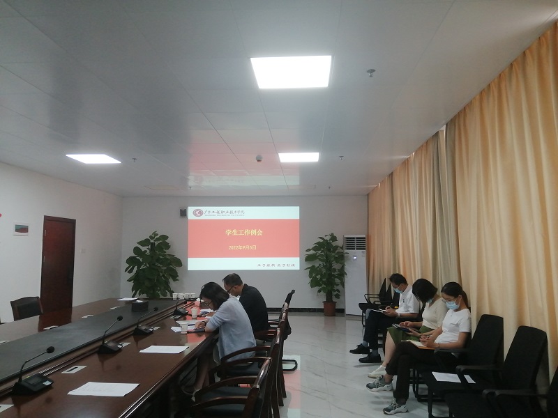 学生工作部部长黄馥丽介绍了2022年下半年学生工作要点,对秋季迎新相关工作以及新生入学教育方案作了部署安排。各二级学院副书记分别就学生开学返校情况、迎新筹备、“一院一册”新生入学教育等相关工作作了介绍,为保证新学期学生思想教育与管理工作的顺利进行,营造和谐、美好的校园环境奠定良好基础,全体学工人凝心聚力,更好服务学生健康成长成才和学校“双高”建设,以优异成绩迎接党的二十大胜利召开。
