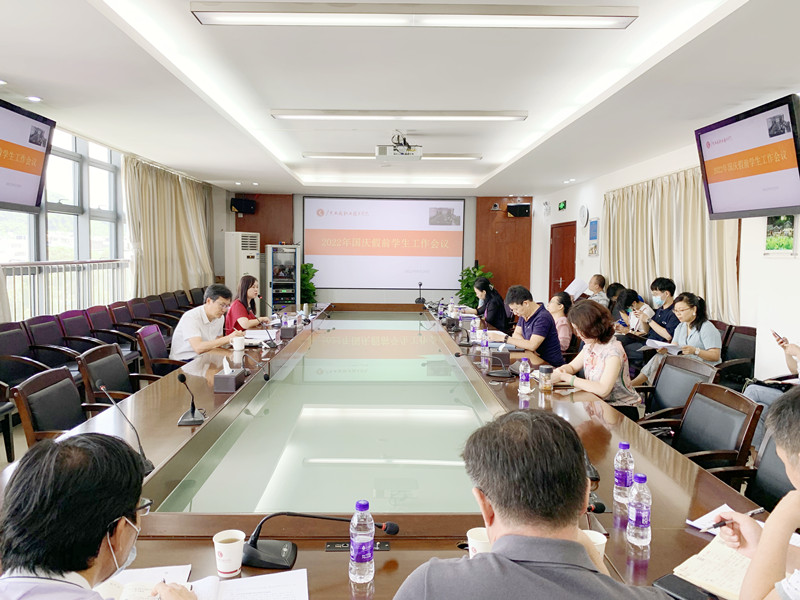学工部部长黄馥丽就学校放假通知的要求、做好假期辅导员值班值守、突发事件处置流程、安排好对留校学生的关心关怀、做好长假后学生返校数据统计上报等相关工作做了部署;副部长查宇驰传达了学校《关于做好2022年国庆假期校园疫情防控工作的通知》文件内容,介绍了学校疫情防控要求、假期学生去向台账上报、学生安全注意事项等方面工作。