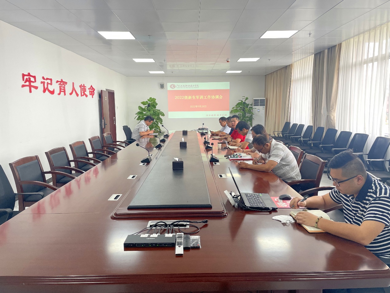2022级新生军训广州校区、省职教城校区分别于10月16日、10月18日开始,为期两周。通过本次协调会,将进一步细化军训工作方案,做好工作统筹和落实分工,确保安全、有序、圆满完成新生军训工作。