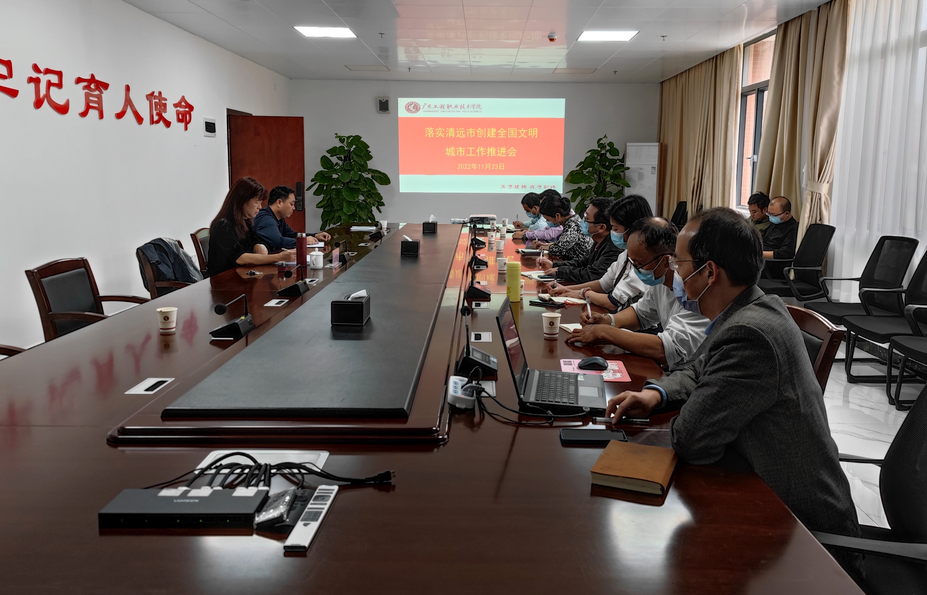 11月23日下午,学校在省职教城校区办公楼411室召开落实清远市创建全国文明城市工作推进会。党委方燕副书记、揭英荣副校长,宣传部(武装部)负责人、省职教城校区总务后勤部(保卫部)和团委中层干部、二级学院党总支书记参加了会议。会议由方燕副书记主持。