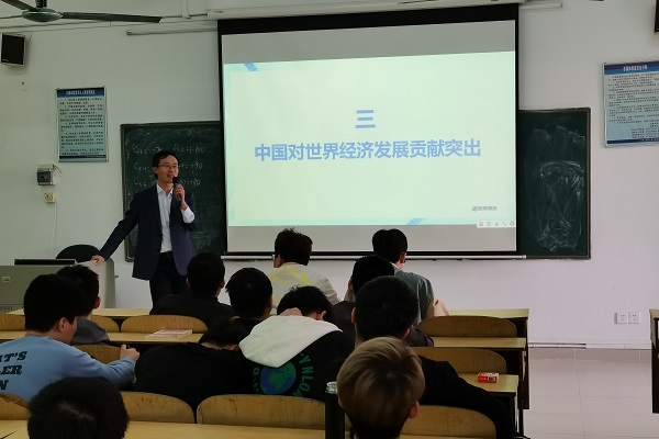 3月8日上午,学校党委委员、副校长张小广在广州校区教学楼704教室以《世界经济发展与中国的突出贡献》为题,给2021级软件技术C、D班的同学们开讲“思政第一课”。他从“当前世界经济运行特点与变化、当前世界经济面临风险与挑战、中国对世界经济发展贡献突出”等三个方面进行了深入分析和系统讲解。张小广副校长运用大量的案例分析、概念阐释、数据对比和课堂互动等教学资源和手段,深刻分析阐述了面对世界百年未有之大变局,面对逆全球化、美元霸权、贸易保护主义、世界经济滞胀等风险挑战,中国应保持自身战略定力,以科技自主自立自强来推动经济高质量发展,最根本的是把自己的事情做好,从而在未来世界经济竞争当中赢得主动权。