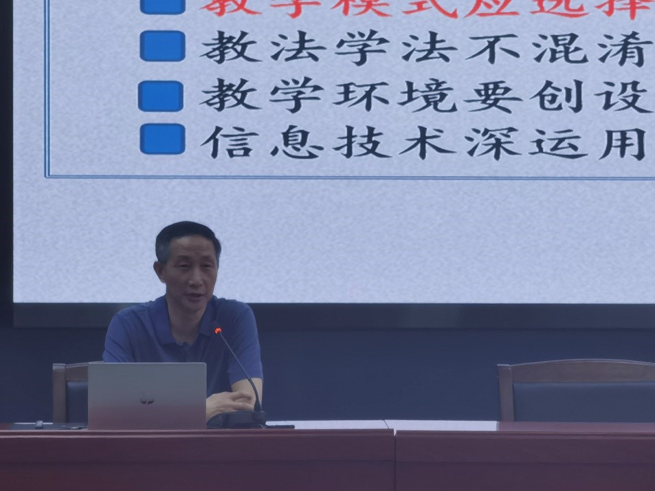 下午场蒋伯杰副校长以“教师教学能力比赛——优化教学设计”为题,为全体教师从教学能力比赛方案整体解读,比赛材料提交呈现的基本要求、比赛评审的基本要点等方面进行深入剖析,围绕教学设计、比赛选题、课程重构、人才培养方案、课程标准、教学实施报告、教案四个文档撰写等方面做了细致精彩的讲解,特别提出要加强“课程思政”建设,深挖思政元素。