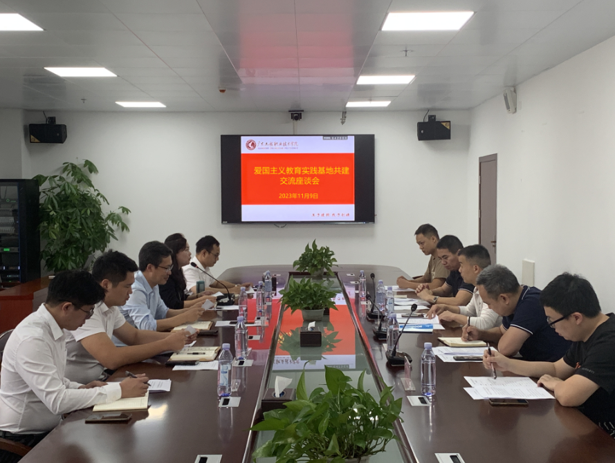 学生工作部介绍了《爱国主义教育实践共建基地建设方案》、学校国旗护卫队的建设情况和所获荣誉。总务后勤部(保卫部)介绍了学校义警队的建设情况。与会人员围绕爱国主义教育实践基地的合作模式、活动形式和国旗护卫队的训练方式等方面展开了详细和深入交流。接下来,学生工作部将推进与清远市公安局共建爱国主义教育实践基地,组织开展喜闻乐见、内容丰富、形式多样的爱国主义教育活动,激发在校大学生对国家的热爱之情,提高国家安全意识,共同促进警校共建长效机制良性发展。