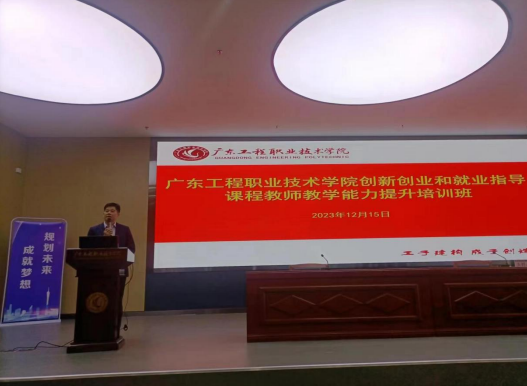 为加强“专创融合”示范课程建设,提升双创教育和就业指导课程教师的教学能力和教学质量,认真备战首届全国大学生职业规划大赛和中国国际大学生创新大赛(2024),12月14至15日,我校分别在广州校区和省职教城(清远)校区举办了创新创业和就业指导课程教师教学能力提升培训班。创新创业学院院长黎惠生、副院长兼教研室主任何杰文,广州华学教育科技有限公司总经理李显意,学校各二级学院党委副书记、辅导员,《创新创业基础》《就业与创业指导》和《职业生涯规划教育》三门课程的全体授课老师以及部分学生创业团队负责人参加了学习培训。