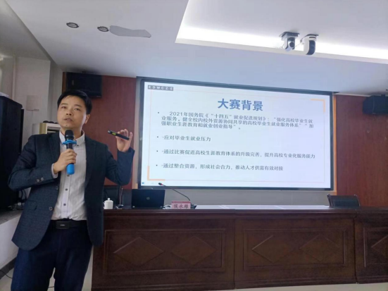 培训班邀请华南农业大学就业指导中心副主任、创新创业学院副院长曾璇,华南师范大学创业学院专职副院长侯永雄,广东职业技术学院创新创业学院院长王北一以及深圳职业技术大学创新创业学院教研室主任同婉婷等4位业界的资深专家来校授课。王北一院长以《中国国际大学生创新大赛全景透视》为主题对大赛规则、参赛要求、备赛策略和比赛趋势变化等内容进行深度剖析。曾璇院长和侯永雄院长以《首届全国大学生职规大赛赛事解读》为主题对全国大学生职规大赛的赛制、赛程、组织及参赛作品的撰写技巧等内容进行了详细讲解。同婉婷主任以《专创融合“金课”设计与制作》为主题对双创课程体系和专创融合课程建设及教学改革的方法与路径进行了深度分享。