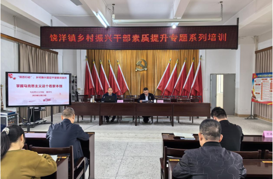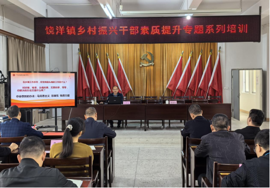 为全面落实“双百行动”持续推进乡村振兴,根据工作部署,12月15日上午,我校组织举办的饶洋镇基层干部素质提升主题培训在人民政府五楼会议室举行。培训活动由饶洋镇党委书记赖建国主持,学校马克思主义学院院长郭华生、曾立坚老师分别进行授课,饶洋镇相关党政领导干部、各村业务骨干以及驻镇帮扶工作队等40多人参加了此次培训。