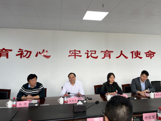 座谈会上,揭英荣对梅建波一行来校调研表示热烈欢迎,表示两校交往密切,友谊深厚,期待未来更深层次的交流与合作,共同促进双方学校的高质量发展。揭英荣从学校历史沿革、学科特色、学校的现状及未来规划等方面向来宾作了介绍,分享了学校在基础建设、后勤保障、安全保卫、医务室管理及财务管理等方面的做法和成效。