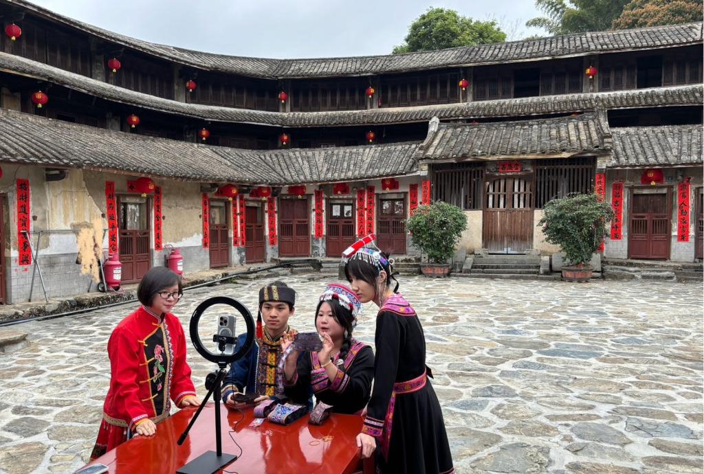 随着“数商兴农”的广泛实施,流量已然成为助力乡村振兴的“新农资”。通过新媒体直播,更多的人了解蓝屋村,认识畲族,走进畲乡,遇见蓝氏围屋-泰华楼,探寻畲族的手工艺品,文创产品,农特产品,不仅带动了当地老百姓的经济收益,同时打开了蓝屋村文旅产业的大门。积极响应百千万高质量发展工程,根据“双百行动”工作部署,举行政校联动直播活动,助力地方经济发展,同时也给高职学生提供实践平台和机会,在实践中提升家国情怀,增强民族团结的意识,谨记乡村振兴的使命,是思政教育的重要途径。
