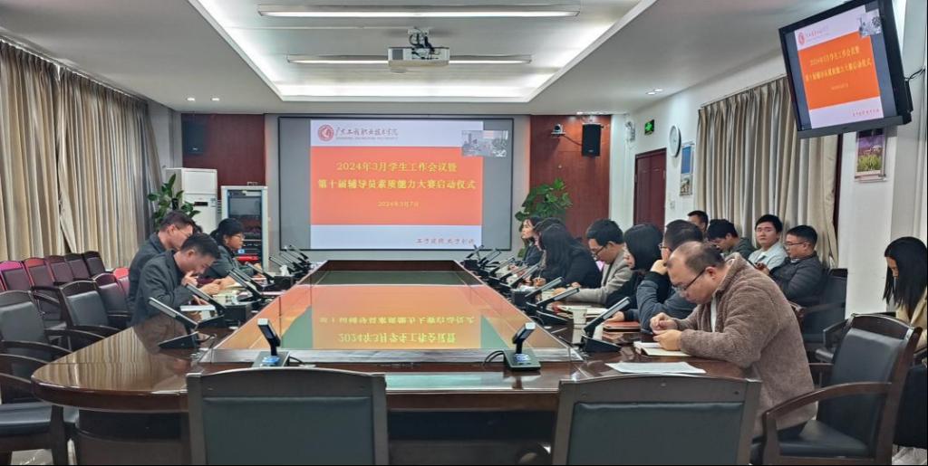 会上,学生工作部部长黄馥丽对寒假期间的学生工作进行了全面的总结,并对新学期的工作进行部署。2024年学生工作部将坚持贯彻落实教育强国建设规划纲要,紧紧围绕学校党委党建与思政工作部署,紧扣学校“双高”建设任务,坚持稳中求进、以进促稳、先立后破,深入落实新时代培根铸魂“八大工程”,聚焦30项重点工作举措,锚定目标任务,让思想政治教育工作聚人气、有生气、接地气。在辅导员素质能力大赛启动仪式上,曾婉玲副部长对2024年第十届辅导员素质能力大赛的具体安排进行详细介绍。