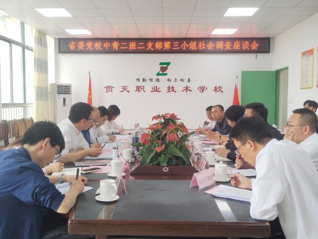 3月29日上午,由省委党校教授代凯带队,省委党校中青二班二支部第三小组一行 7人到饶平县贡天职校实地调研我校“双百行动”开展工作的情况,展开以“扎实推进双百行动,培育乡村振兴动能——高职院校助力双百行动”为主题的社会调查。