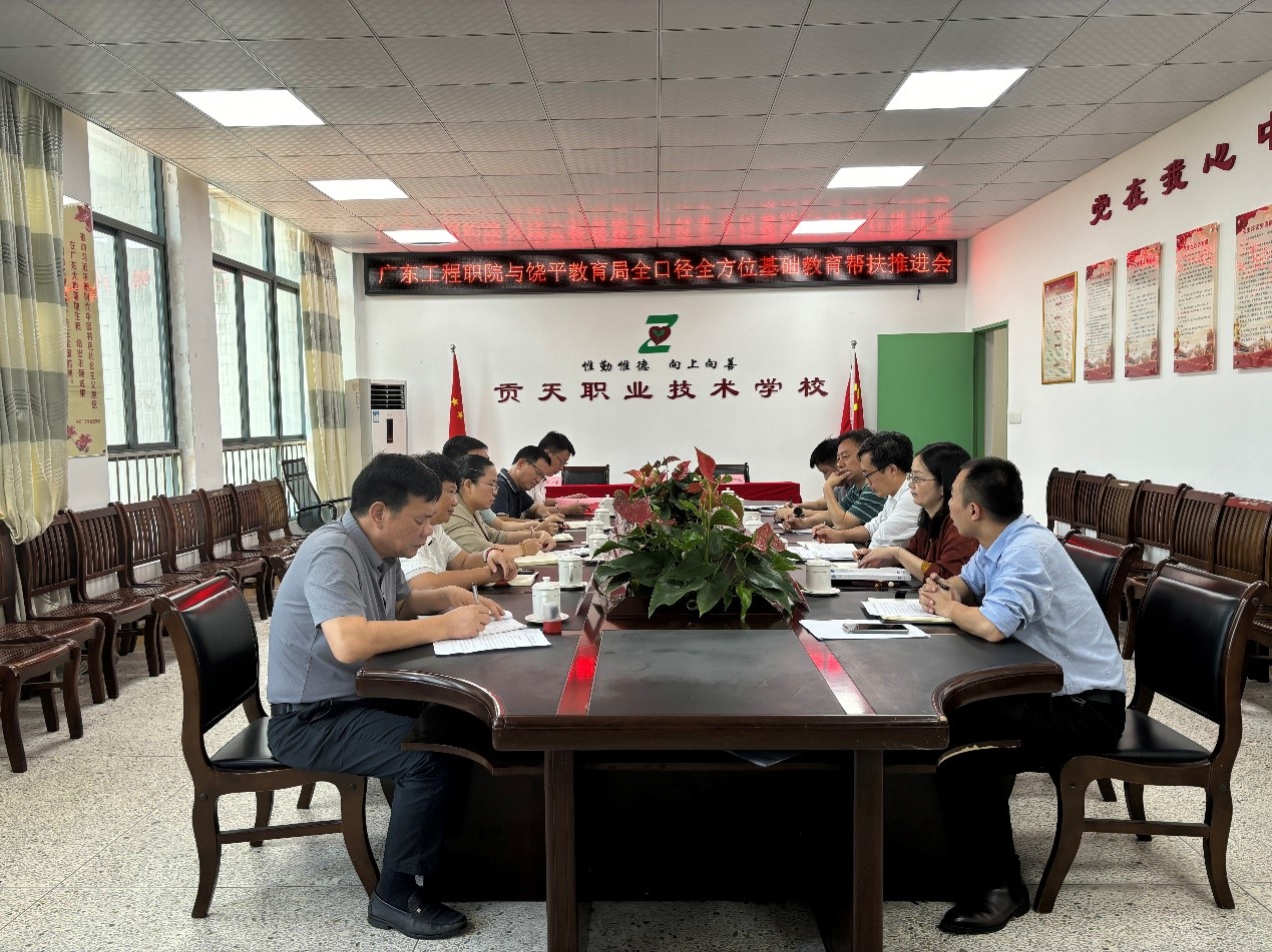 5月29日上午,调研组到贡天职校推进全口径全方位基础教育帮扶工作,会议由县教育副局长黄授慧主持,县教育局教育股、人事股、教师发展中心教研室、贡天职业技术学校及饶洋中学主要负责同志均出席了会议。会上,我校与饶平县饶洋中学签订《共建“教师专业发展联盟学校”合作协议》,学校驻饶服务队向与会领导汇报全口径全方位帮扶工作进展,贡天职校、县教师发展中心及饶洋中心分别与我校人力资源部、商务学院及现代教育技术中心等部门针对“三二分段对接”、教育教学改革、教师专业发展等交换了工作意见。