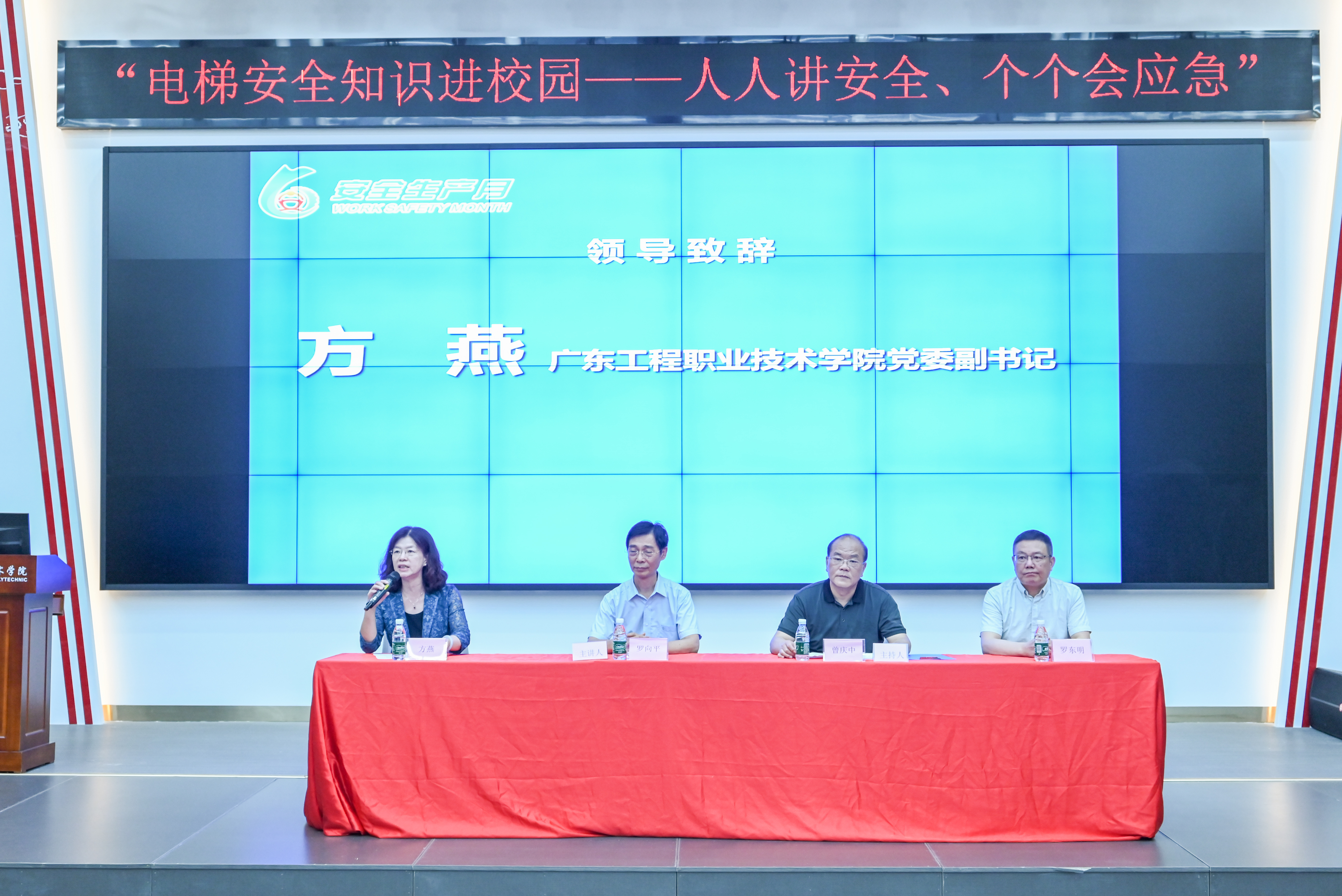 为有效普及特种设备安全知识,提升学生安全文明使用电梯意识和自我保护能力,广东省市场监督管理局联合清远市市场监督管理局、广东省特种设备行业协会等单位于6月26日赴我校开展了以“电梯安全知识进校园——人人讲安全、个个会应急”为主题的“电梯安全知识校园行”活动。广东工程职业技术学院党委副书记方燕、广东省市场监督管理局二级调研员罗向平、清远市市场监督管理局二级调研员曾庆中、广东省特种设备行业协会专职副会长罗东明等出席活动,清远市电梯行业相关单位代表、我校师生共150余人参加活动。