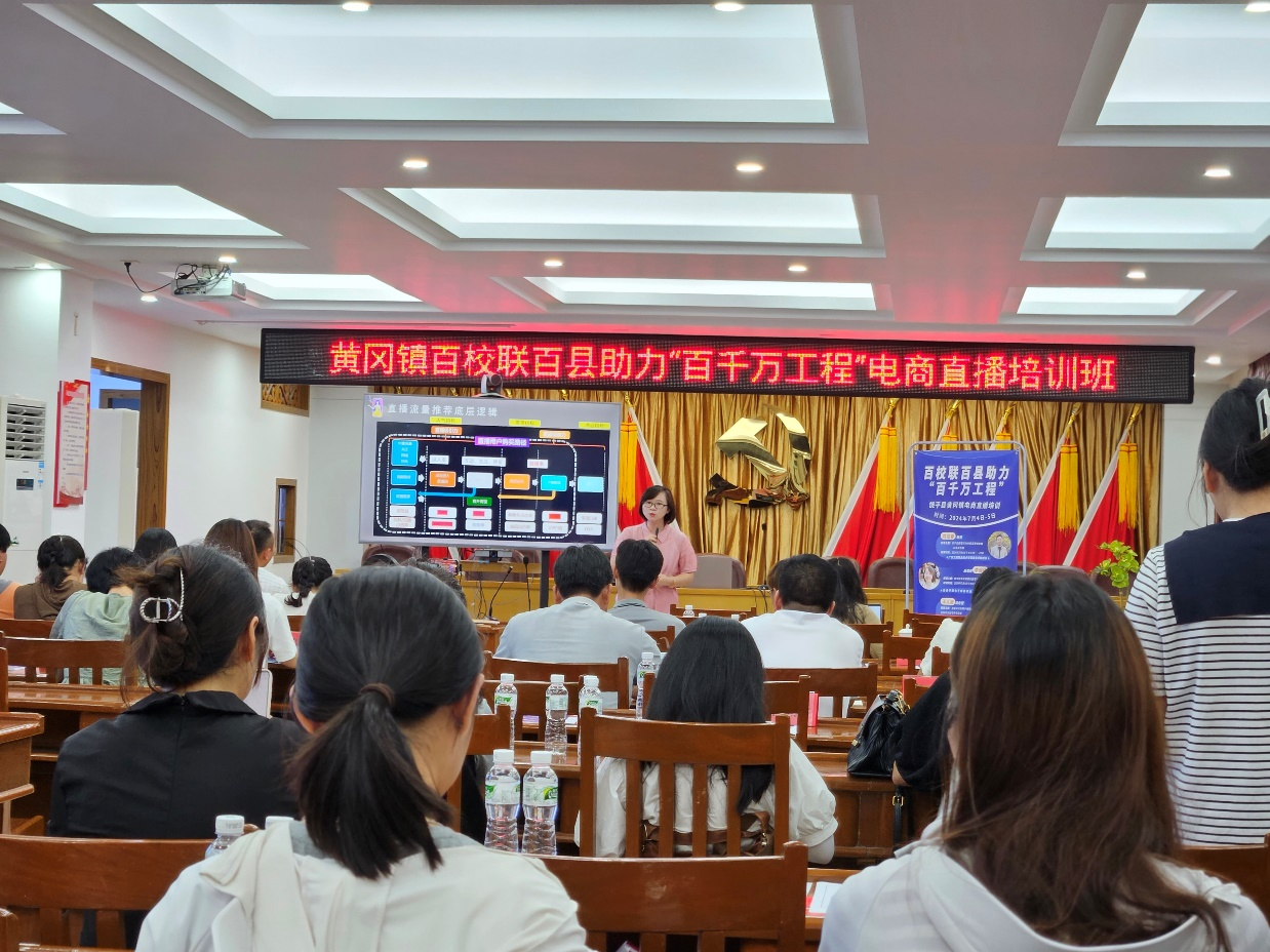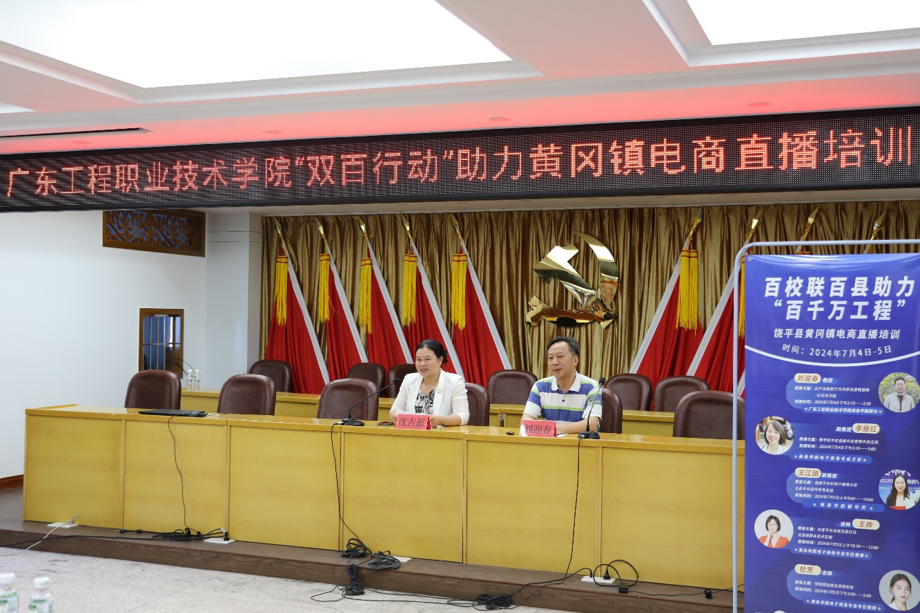 7月4日-5日,调研队伍在饶平县黄冈镇开展电商直播培训。商务学院院长刘迎春教授、专业主任李丽红副教授、骨干教师王江丽副教授、王帅老师、杜芳老师和“为农弘商”百千万突击队优秀学生助理组成师生教学团队,依据黄冈镇党委的需求,面向黄冈镇乡村青年、新农人、致富带头人及乡镇社工等进行培训。培训班由黄冈镇镇委书记沈吉蕊书记主持,并作开班致辞。本次培训内容涵盖市场分析、数字技术、起号养号、脚本话术、拍摄剪辑等,以生动的案例分享、实战演练和互动交流等方式,让学员深入了解直播营销的基本技能和核心要素,共计5场专题讲座,现场培训54人,共计培训270人次,并开启即时直播,直播在线共1700余人次。