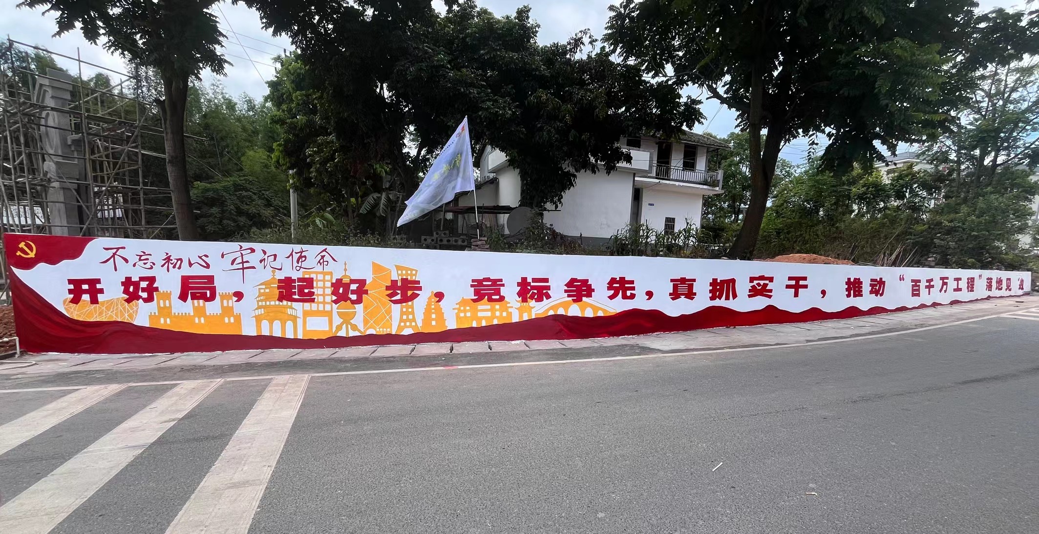 当地《五华新闻》对此项工作进行了新闻报道。在河东镇太和村村口处,梅州市五华县政府媒体中心记者看到,大学生们正用画笔、毛笔等工具,有序地开展墙绘活动。他们通过结合乡村振兴、“百千万工程”、典型村建设等工作精神,联系太和村发展实际,以墙面为画卷,绘制出了以“社会主义核心价值观”和百千万工程宣传标语为主要内容的墙绘作品。