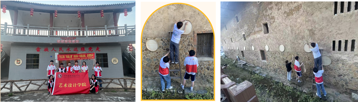 为深入贯彻广东省委“1310”具体部署,落实乡村振兴战略,促进产学研紧密结合,承担新时代农业农村现代化高质量发展使命和社会责任,广东工程职业技术学院艺术设计学院按照“双百任务”安排,组建的“凤凰之翼”突击队是一支由徐谌榕、刘一星老师为指导的博士教师队伍,于7月8日带领学生奔赴饶平县,在学校省“双百行动”服务队黎迪斯老师的全程综合协调和安排下,开展以“凤凰启航,大美饶平”为期七天的青春服务基层、助力“百千万”的暑期社会实践活动,实现“以青春之名美绘畲乡,以青春之名设计助农”一系列增彩赋能美丽乡村的青春故事。
