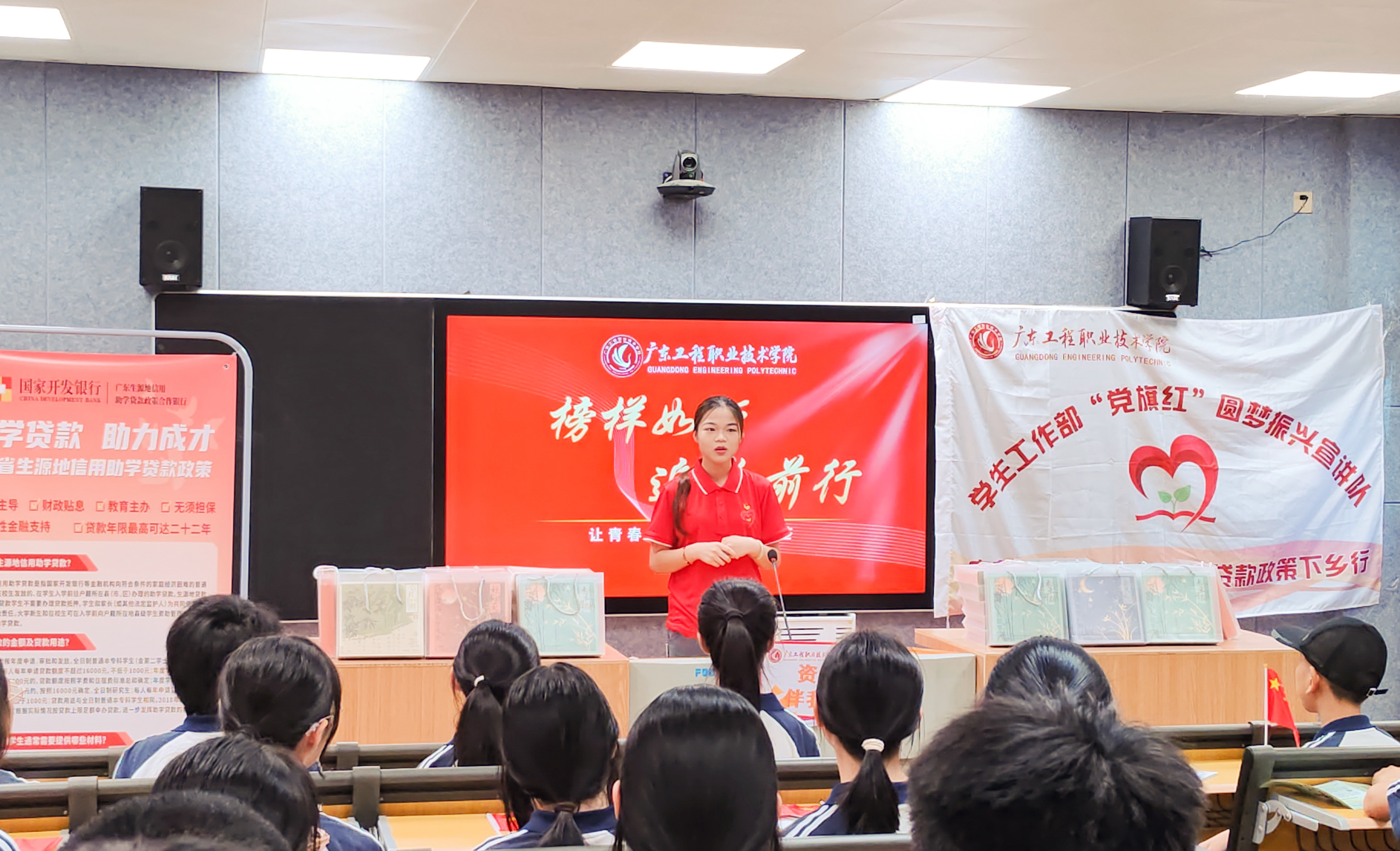 我校“党旗红”圆梦振兴宣讲队深入当地学校,举办主题为“梦想点亮芳华 资助伴我成长”资助政策宣讲会,为当地学生详细解读了国家资助及助学贷款政策以及学校特色资助项目,为家庭经济困难学生缓解升学压力,助力每一个大学梦想。