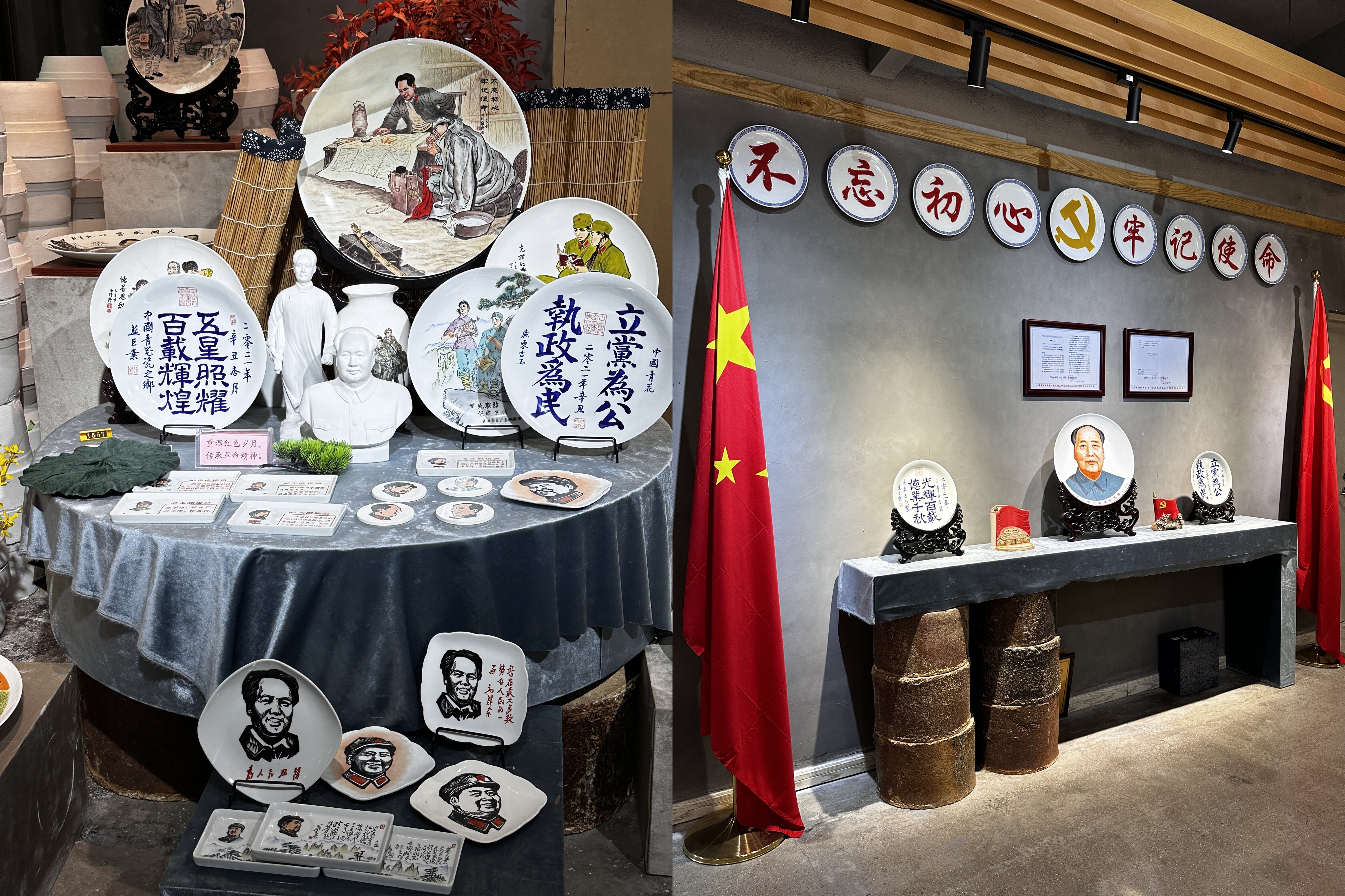 梅州市大埔县桃源镇素有“文化之乡、华侨之乡、陶瓷之乡”的美誉,为进一步挖掘当地红色文化,感受陶瓷魅力,8月23日,在当地政府工作人员的带领下,宣讲队来到了大埔县日用陶瓷行业的大型企业之一--广东吉玉陶瓷有限公司进行参观研学。“吉玉陶瓷”在传承红色文化的过程中,也注重创新表达。他们不断探索新的创作手法和表现形式,将红色文化与现代审美相结合,创作出了一系列具有时代特色的陶瓷作品。