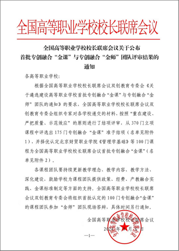 近日,全国高等职业学校校长联席会议公布了首批专创融合“金课”与专创融合“金师”团队评审结果。按照“重在建设、严把质量、示范效应”的原则从全国370门立项课程中评选出175门专创融合“金课”准予结项,并择优认定100门课程为全国高全国高职校长联席会首批专创融合“金课”。我校此前获立项建设的5门专创融合“金课”全部通过结项,其中赵学问老师主持的《装配式混凝土建筑施工》和姚淼仕老师主持的《品牌展示设计》等2门课程获认定为全国高职校长联席会首批专创融合“金课”。