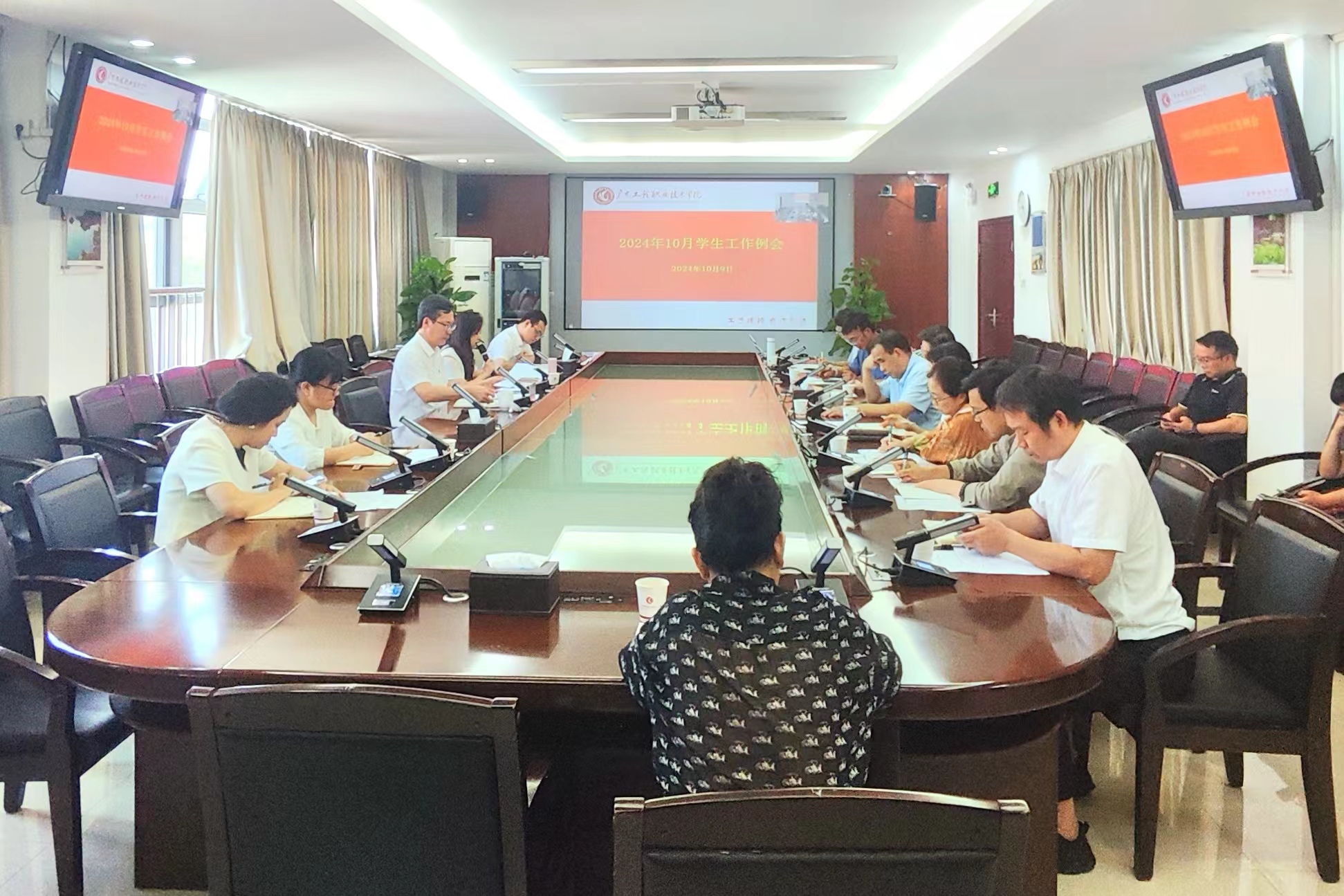 学生工作部(招生与就业指导中心)部长黄馥丽汇报开学以来学生日常管理、心理健康教育、辅导员队伍建设、学生资助以及招生就业工作的开展情况,对存在问题进行剖析、提出具体解决的要求,并提出了下一阶段工作要求和10月工作计划。会上,各学院就近期学生管理和教育存在的堵点、难点进行深入交流。