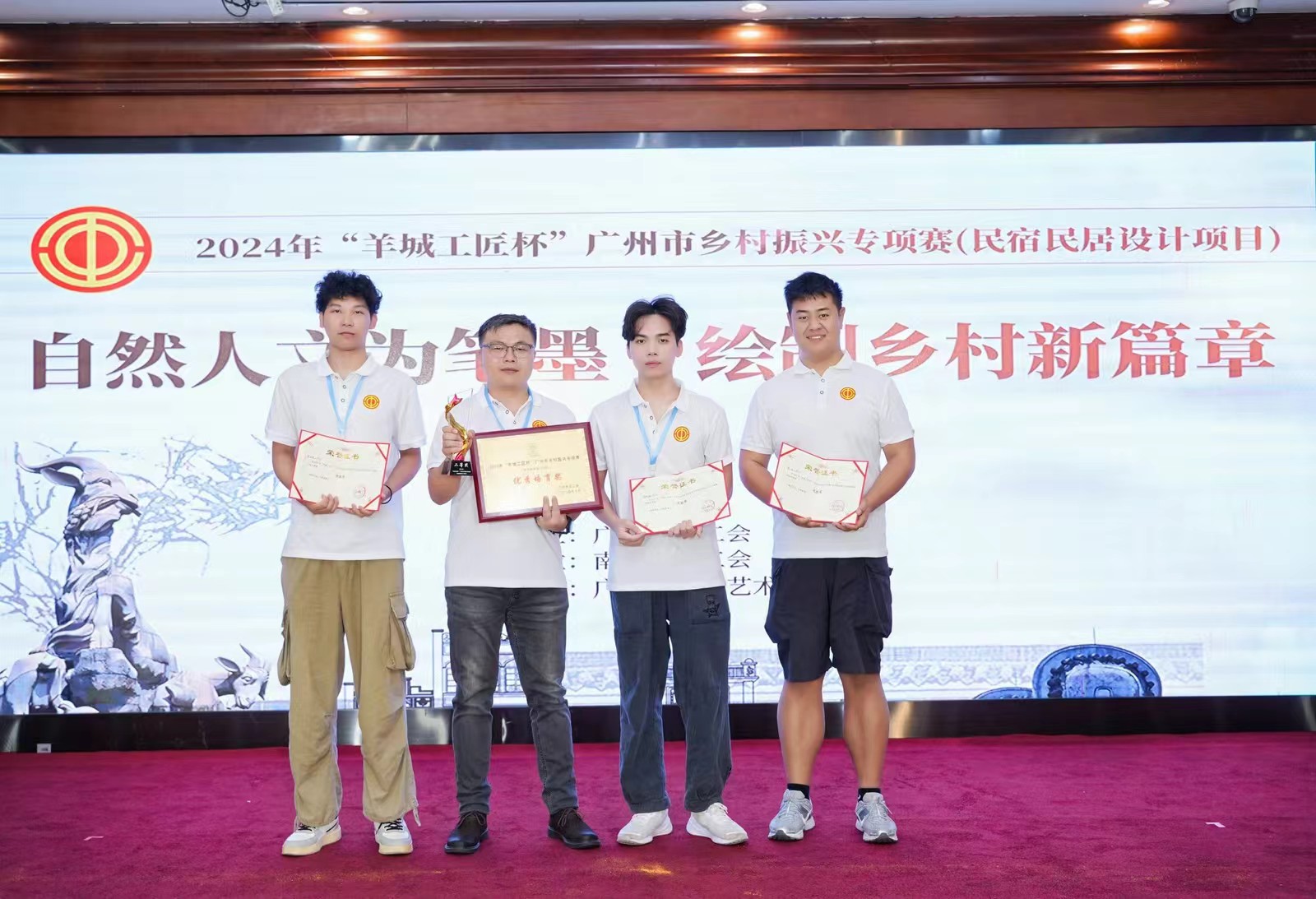 10月9—10日,2024年“羊城工匠杯”广州市乡村振兴专项赛(民宿民居设计项目)决赛在广州市南沙区海力酒店举行,我校建筑工程学院师生李湘华、杨豪、黄海钦、谢勇锋四人经过激烈的初赛角逐进入决赛,喜获一个二等奖、三个优胜奖。