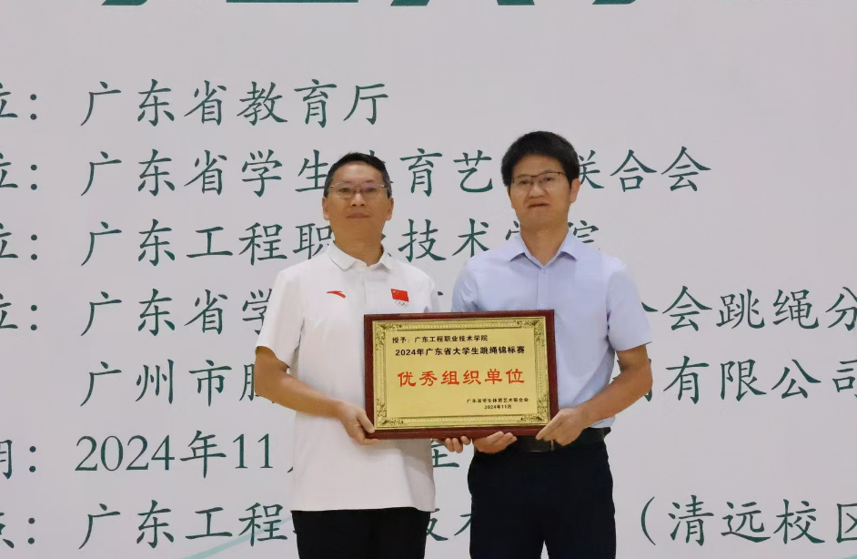 在学校领导的关心指导下,在党政办公室、继续教育学院、团委、总务后勤部、现代教育技术中心、机电(电梯)工程学院等部门的大力支持下,由广东省学生体育艺术联合会主办的2024年广东省大学生跳绳锦标赛于11月8日至10日在我校清远校区体育馆顺利进行,广东省教育厅体卫艺处二级调研员董业权莅临指导工作,我校吴志敏副校长在开幕式上致欢迎辞并参加颁奖仪式。