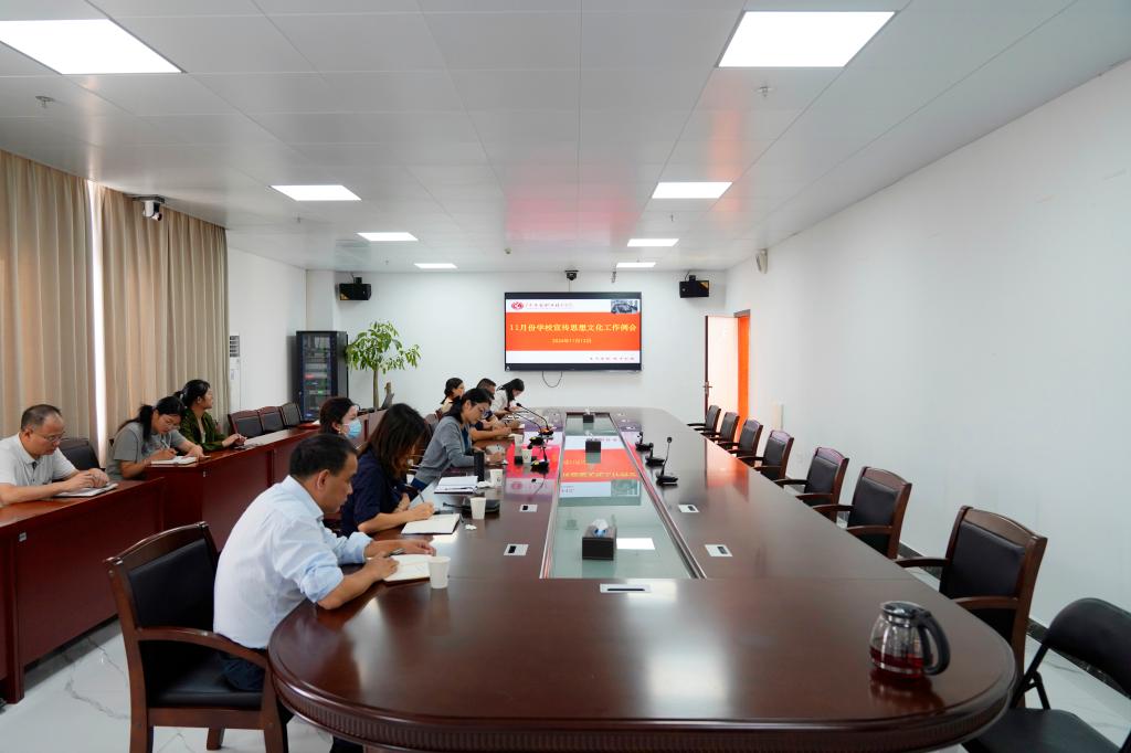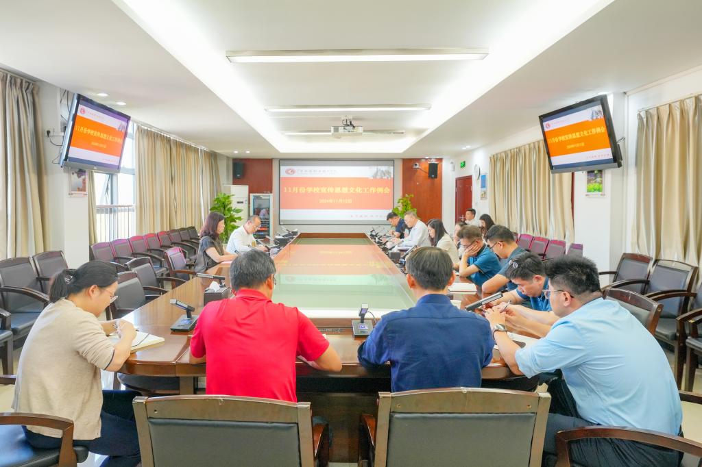 学校相关部门、各二级学院对近期政治安全意识形态安全工作及风险点进行研判分析。宣传部(武装部)副部长林华开通报了10月份以来党委理论学习中心组学习、内宣与外宣、政治安全与意识形态等工作情况,并对下一阶段的宣传思想文化工作进行安排,要重视意识形态工作,准备年底检查相关宣传思想工作材料,做好风险防控,筑牢宣传阵地。