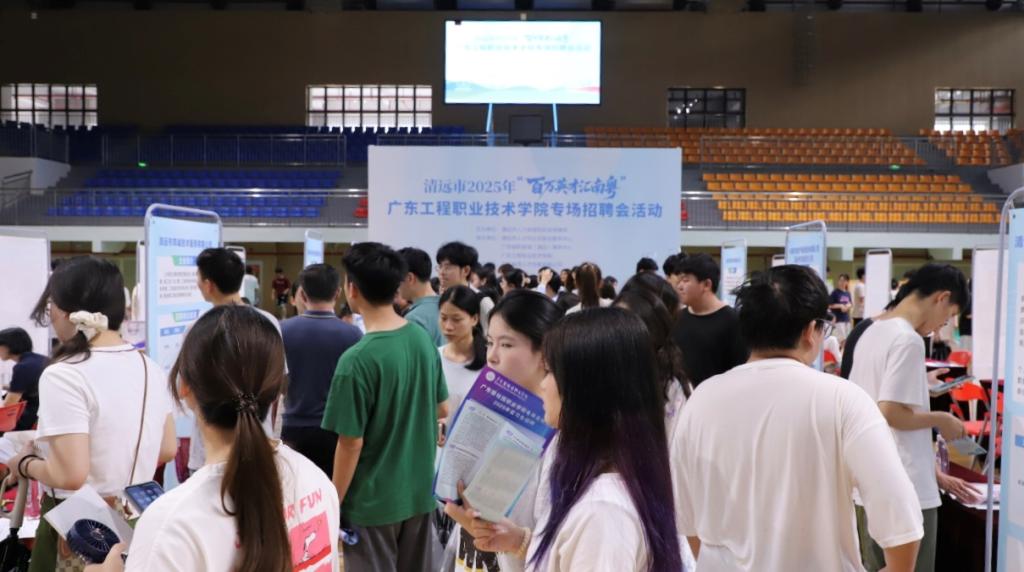 本次招聘活动由清远市人力资源和社会保障局主办,清远市人才和公共就业服务中心、广东省职教城(清远)事务中心、广东工程职业技术学院共同承办,广东融湾人才发展有限公司协办。邀请中国联合网络通信有限公司清远市分公司、中国平安财产保险股份有限公司清远中心支公司高新支公司、清远市广清电商产业发展有限公司等36家优质企业参会,特别设置数字信息技术、机电工程、综合管理三大行业专区,提供新媒体运营、电商主播、数控编程、数据标注员等累计546个就业岗位,吸引众多省职教城高校学子到场应聘。