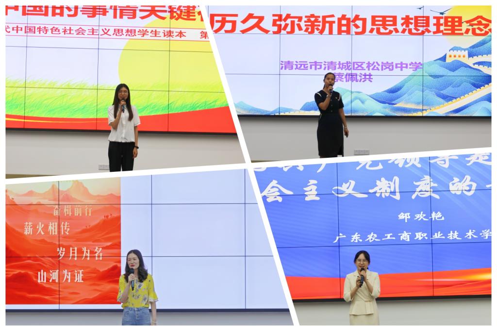 本次教学成果展示暨课例资源库建设培训活动,进一步推动清远市大中小学之间不同学段的思政课的共建交流,有力促进清远市大中小学思政课教学方式、教学内容、教学目标的循序渐进和有效衔接,使各学段的思政课教学成为一个全链条、全方位、全过程的科学的思政课一体化的育人体系,从而全面推动包括“育人主体共同体、课程建设共同体、资源整合共同体、组织保障共同体”新的大中小学思政课一体化共同体的形成,为构建循序渐进、螺旋上升的大中小学思政课育人一体化新格局探索更多的“广东工程+清远智慧”和“广东工程+清远经验”。(马克思主义学院 李壮志 撰稿 彭群芳 供图 曾名沁 校对 郭华生 审核)