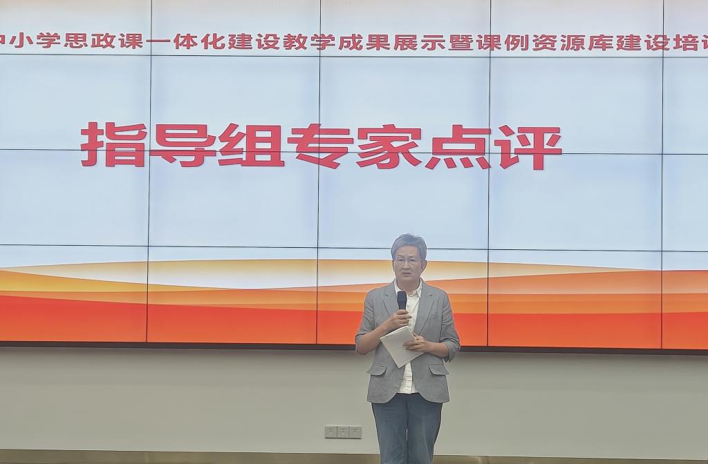 广东省大中小学思政课一体化建设专家指导组成员、广州番禺职业技术学院马克思主义学院直属党支部书记曹群教授围绕具体课程展开点评,从教学内容的深度挖掘、教学方法的创新运用、师生互动的实际效果等维度出发,既充分肯定了课程理论联系实际、案例鲜活的突出亮点,也针对教学环节优化、学生主体作用发挥等方面提出改进建议,为提升一体化思政课堂教学质量提供了专业指导。