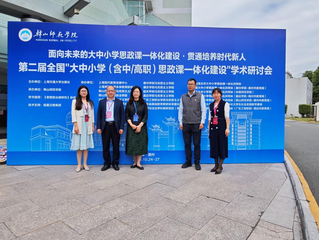 10月24日至26日,学校副校级领导、工会主席方燕教授带领马克思主义学院一行到潮州参加第二届全国大中小学(含中/高职)思政课一体化建设学术研讨会。本次活动由上海交通大学出版社主办、韩山师范学院承办,我校马克思主义学院联合协办。来自全国各地大中小学300多名专家学者和思政课优秀教师齐聚一堂,共话思政“大”课堂。