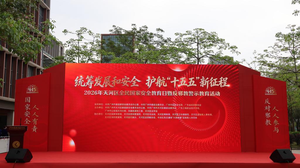 2026年是“十五五”开局之年,4月15日,我们迎来了第十一个全民国家安全教育日。为深入践行总体国家安全观,全面宣传国家安全法律法规,深化反邪教警示教育,天河区委国安办、天河区委政法委、天河区法学会联合多部门,在广东工程职业技术学院主会场及多所高校、街道分会场同步开展2026年天河区全民国家安全教育日暨反邪教警示教育系列活动,以沉浸式、互动式、体验式宣传,有效增强全民国家安全意识,让安全理念入脑入心、走深走实。